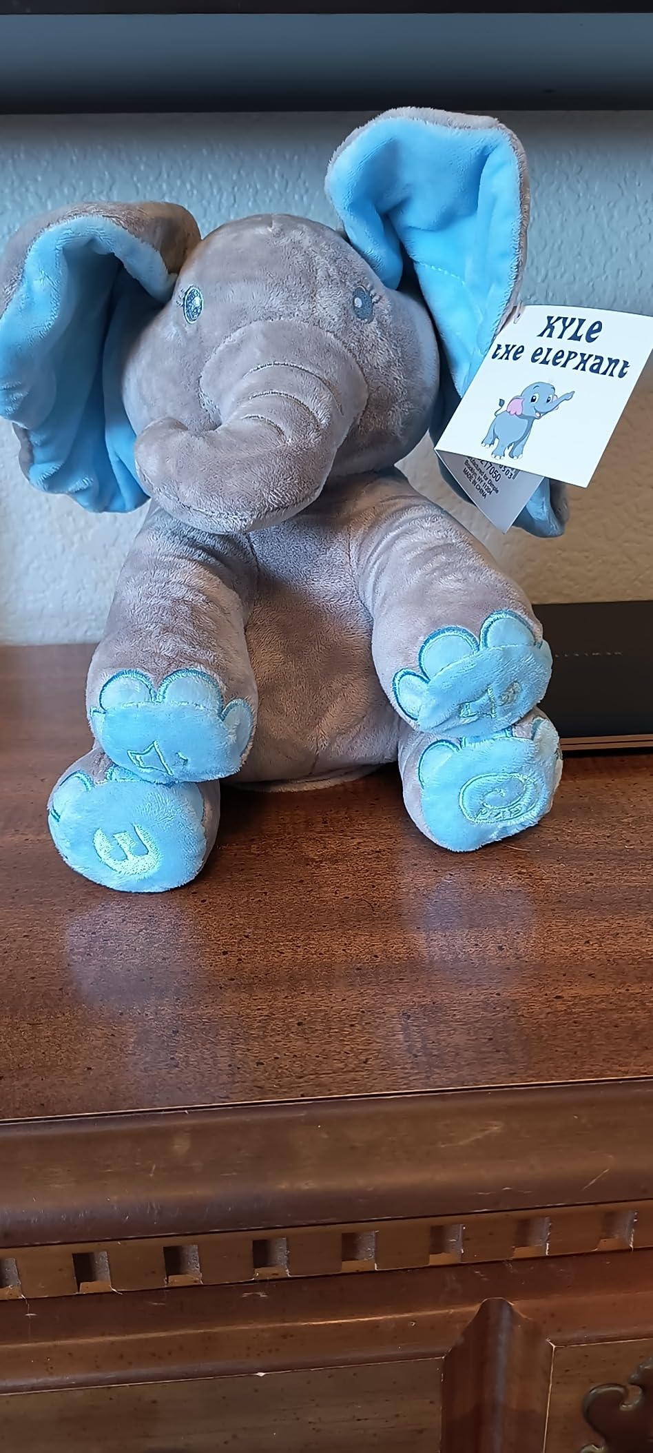 El elefante jugando al cucú es adorable. Es uno de los primeros juegos que hacemos con los niños y les enseña la permanencia del objeto. ¡Muy feliz con esta compra!